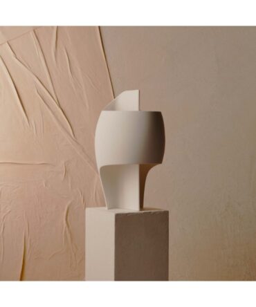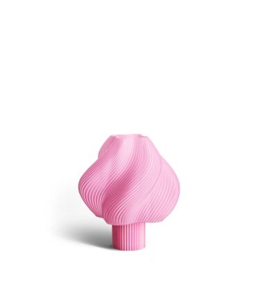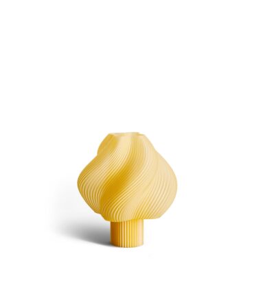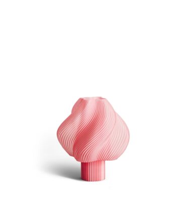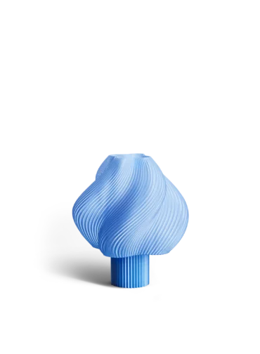 Warren & Laetitia. Deres Amanda bordlampe føres i fantastiske farver, og lysintensiteten kan varieres takket være dens form. Det anvendte råmateriale er naturligt farvet af naturmaterialer, og hvis 3D print er fremstillet af genbrugte plastikflasker.