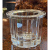 The glass pot is an artisanal plant pot that has a similar shape to a simple plastic flower pot, yet is made of handmade glass. When some of the pots are ecposed to light, a sparkling and transparent shadow is created.
