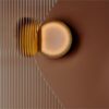 Like a powder case or a precious box, the mechanical action of opening or closing makes the object reassuring and immediately understandable. The light is diffused by a thick glass pane, throughout its depth. Inside, the polished brass flap acts as a pivoting mirror thanks to a visible hinge.