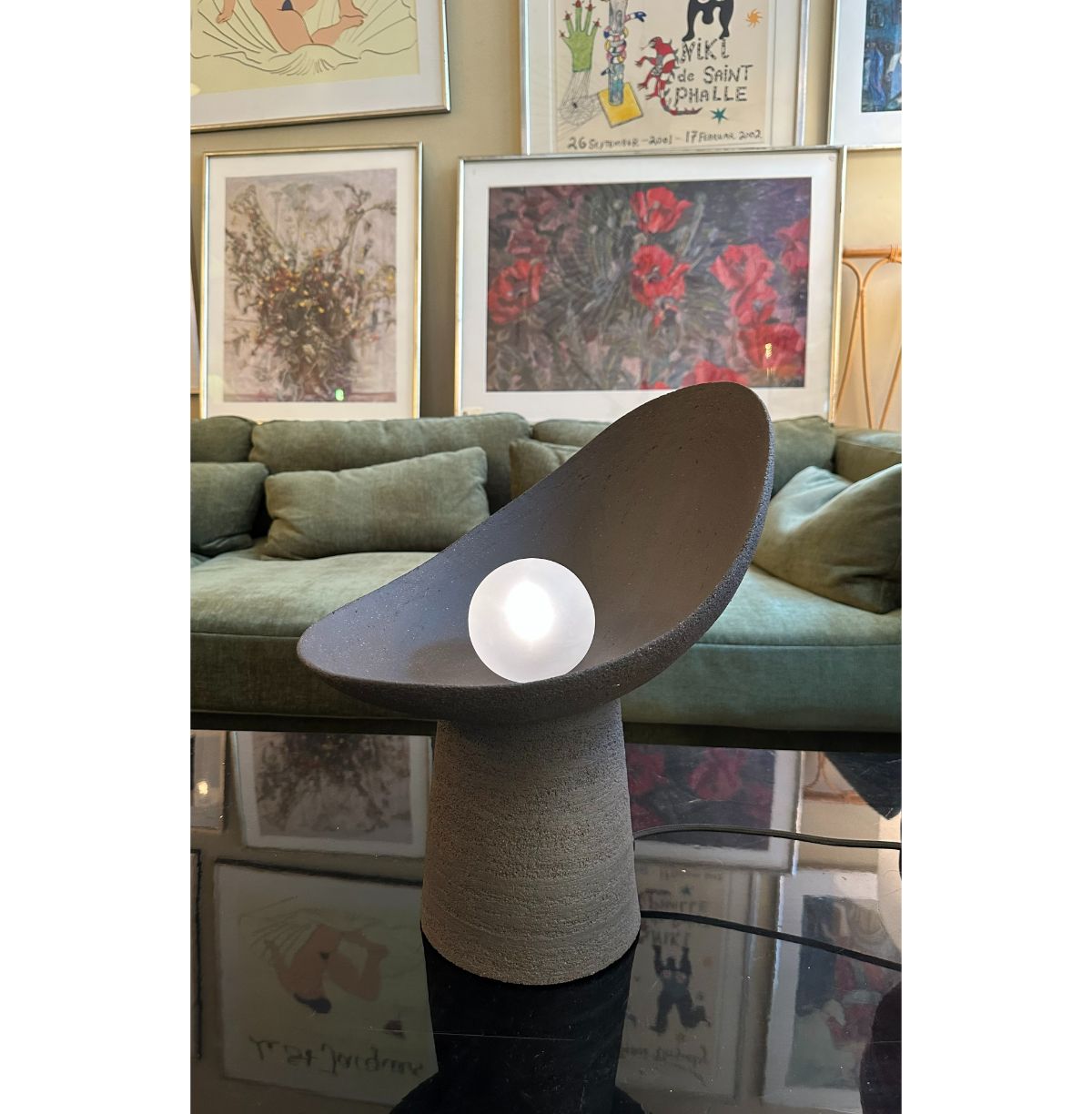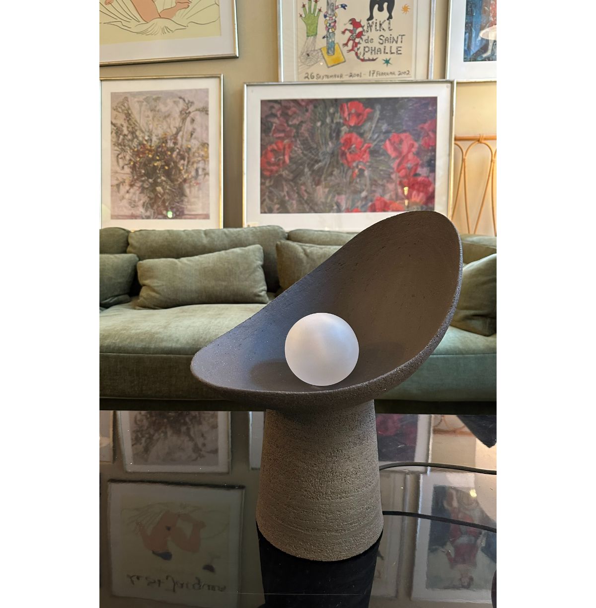 En lille kugle af lys, der næsten ligner en perle, der stadig er indesluttet i sin skal, blænder med absolut renhed. Keramisk og opalglas er klædt i elegance og enkelhed i en skulpturel lampe, der fremhæver den delikate kombination af materialer, der er forbundet med de samme kromatiske nuancer.